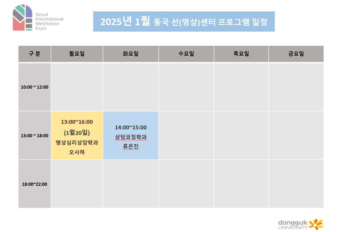 동국 선(명상)센터 2025년 1월 프로그램 일정