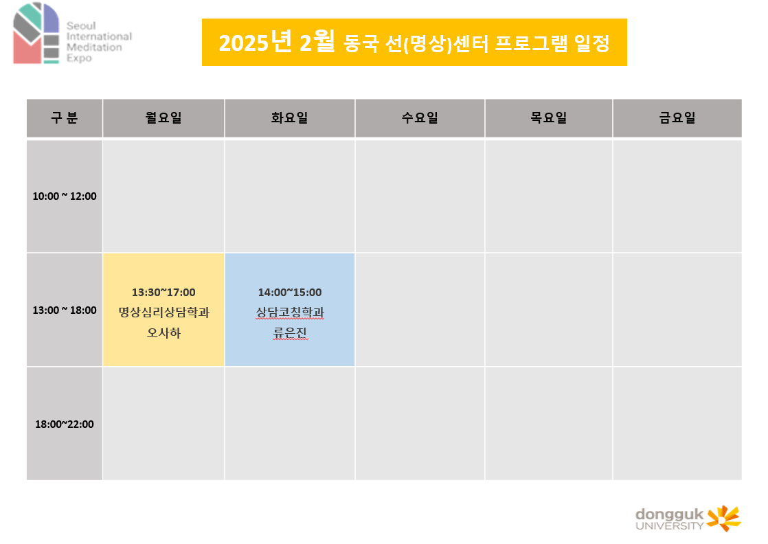 동국 선(명상)센터 2025년 2월 프로그램 일정
