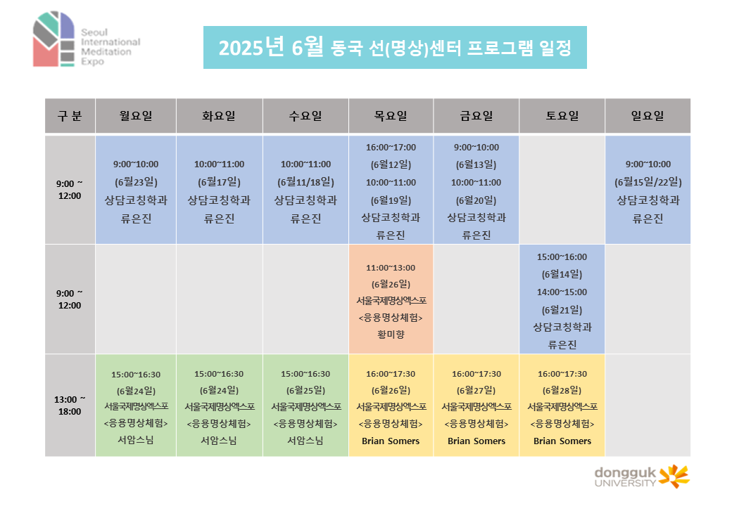 동국 선(명상)센터 2025년 6월 프로그램 일정