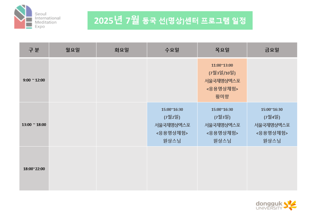 동국 선(명상)센터 2025년 7월 프로그램 일정