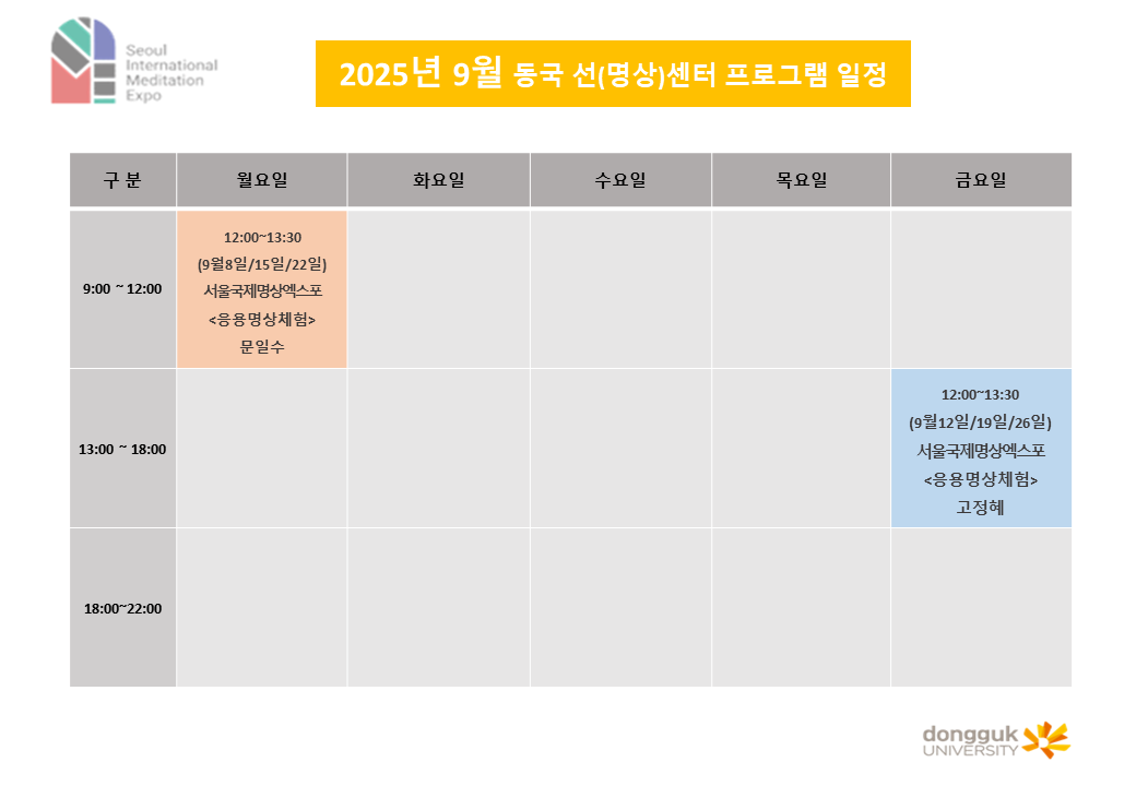 동국 선(명상)센터 2025년 9월 프로그램 일정