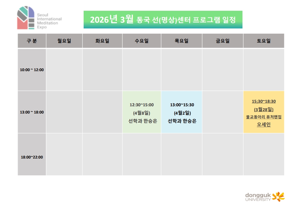 동국 선(명상)센터 2026년 3월 프로그램 일정
