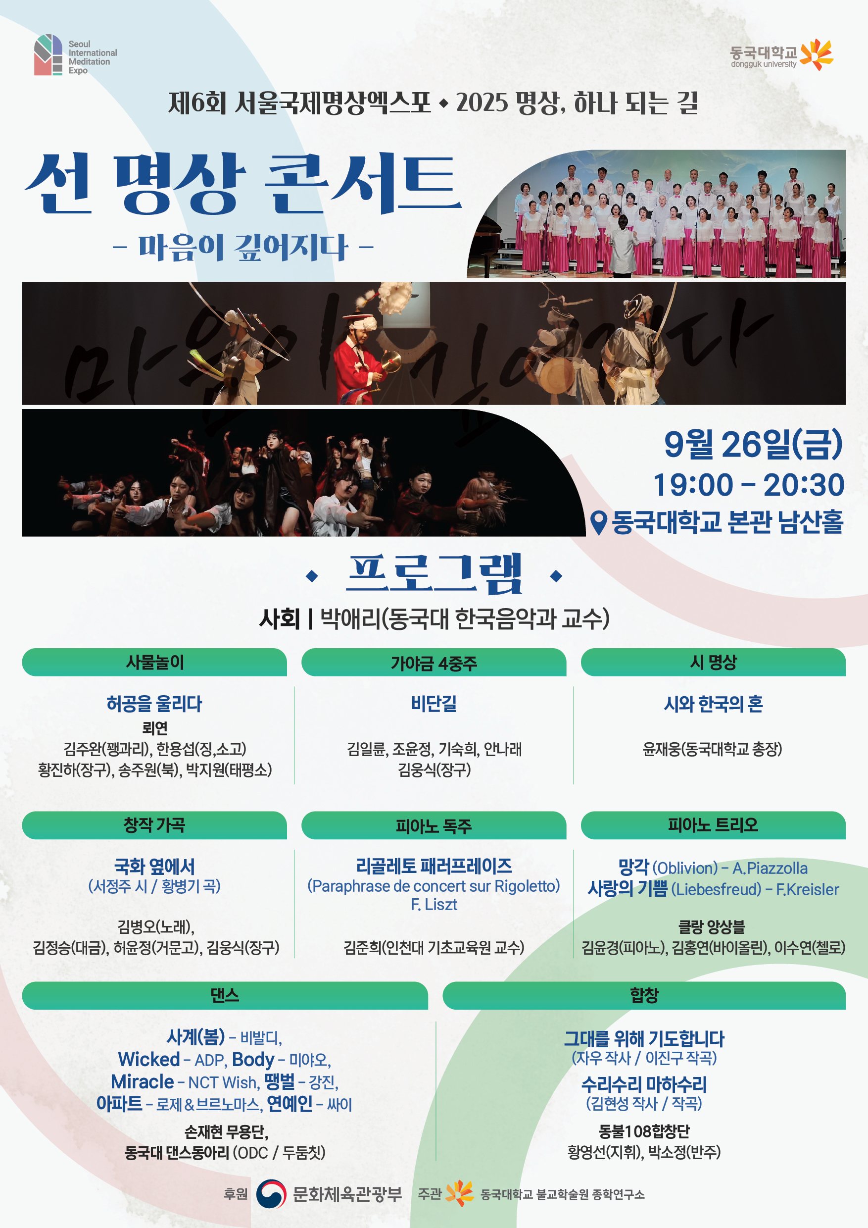 동국대학교 윤재웅 총장님이 직접 낭송하는 시 명상.한국의 혼이 담긴 시어들이 마음속 깊은 곳을 두드립니다.