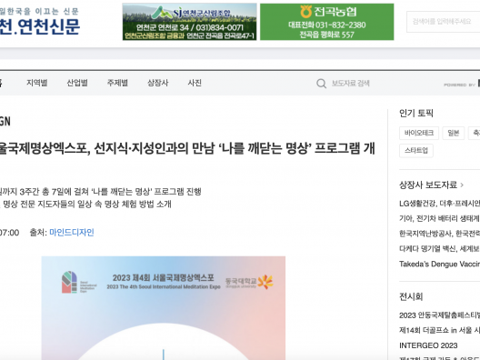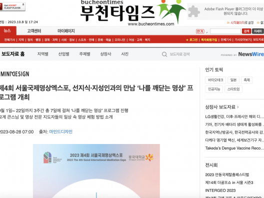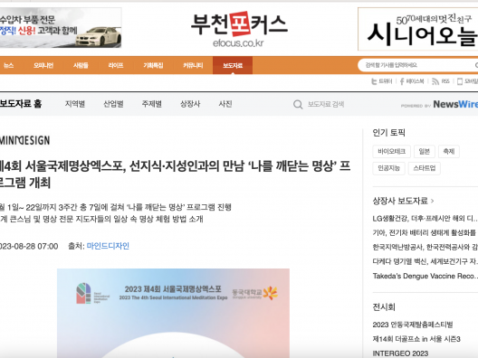 [부천타임즈] 제4회 서울국제명상엑스포, 선지식·지성인과의 만남 ‘나를 깨닫는 명상’ 프로그램 개최