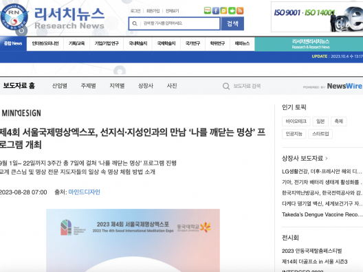 [리서치뉴스] 제4회 서울국제명상엑스포, 선지식·지성인과의 만남 ‘나를 깨닫는 명상’ 프로그램 개최