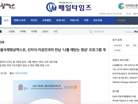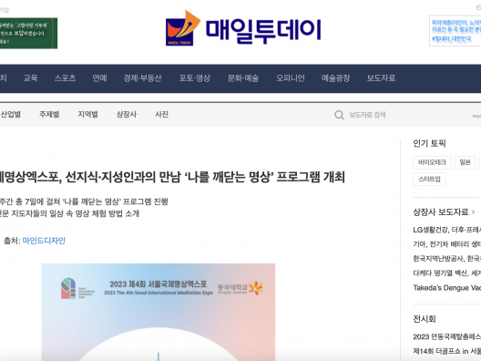 [매일타임즈] 제4회 서울국제명상엑스포, 선지식·지성인과의 만남 ‘나를 깨닫는 명상’ 프로그램 개최