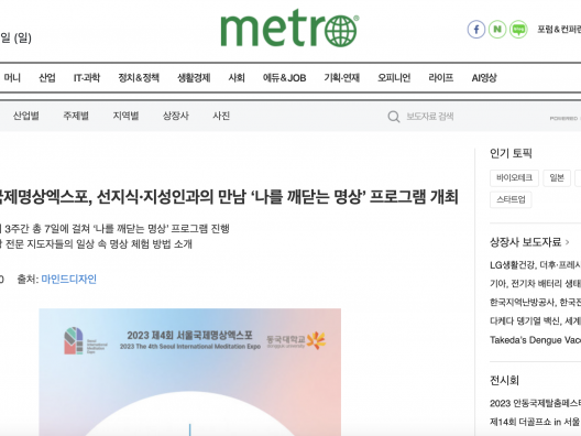 [메트로] 제4회 서울국제명상엑스포, 선지식·지성인과의 만남 ‘나를 깨닫는 명상’ 프로그램 개최