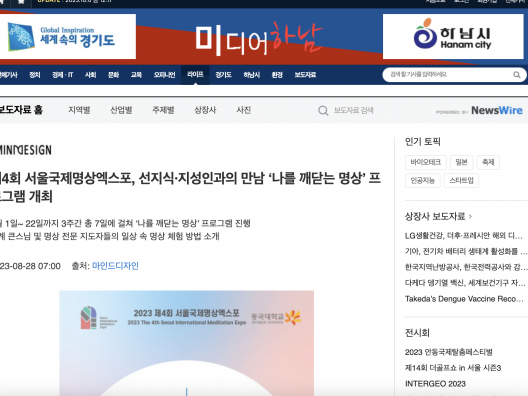 [미디어하남] 제4회 서울국제명상엑스포, 선지식·지성인과의 만남 ‘나를 깨닫는 명상’ 프로그램 개최