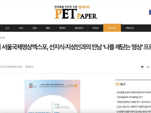 [펫페이퍼] 제4회 서울국제명상엑스포, 선지식·지성인과의 만남 ‘나를 깨닫는 명상’ 프로그램 개최