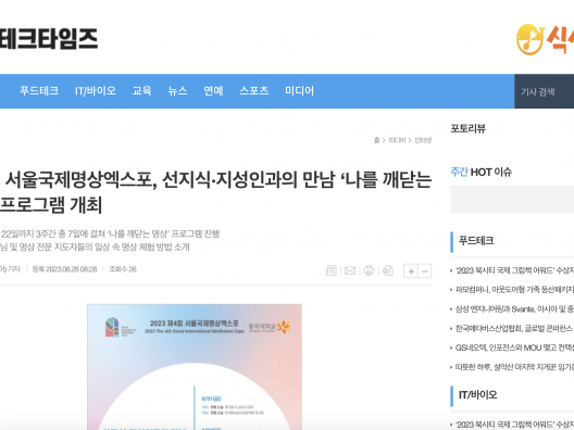 [푸드테크타임즈] 제4회 서울국제명상엑스포, 선지식·지성인과의 만남 ‘나를 깨닫는 명상’ 프로그램 개최