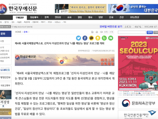 [한국무예신문] 제4회 서울국제명상엑스포, 선지식·지성인과의 만남 ‘나를 깨닫는 명상’ 프로그램 개최