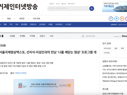 [한국불교방송] 제4회 서울국제명상엑스포, 선지식·지성인과의 만남 ‘나를 깨닫는 명상’ 프로그램 개최