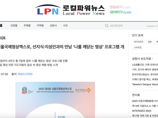 [LPN로컬파워뉴스] 제4회 서울국제명상엑스포, 선지식·지성인과의 만남 ‘나를 깨닫는 명상’ 프로그램 개최