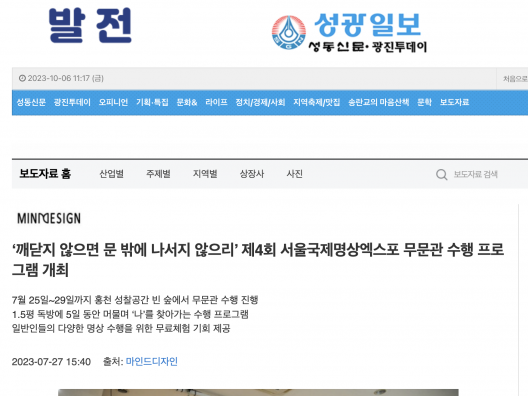 [성광일보] ‘깨닫지 않으면 문 밖에 나서지 않으리’ 제4회 서울국제명상엑스포 무문관 수행 프로그램 개최