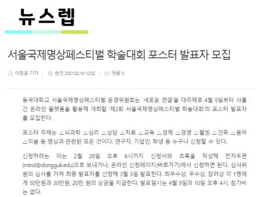 [뉴스렙] 서울국제명상페스티벌 학술대회 포스터 발표자 모집