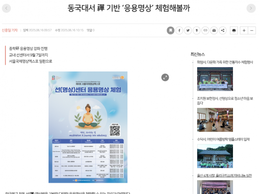 [현대불교] 동국대서 禪 기반 ‘응용명상’ 체험해볼까