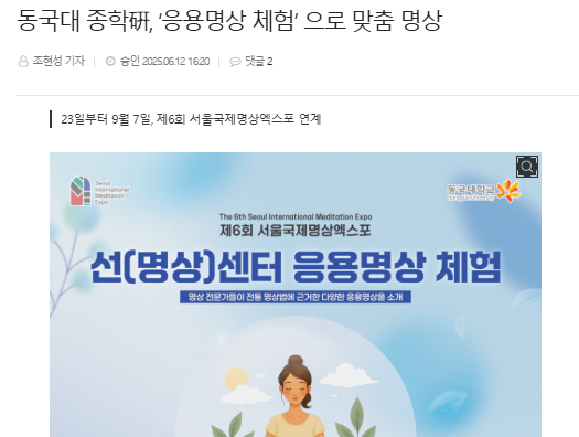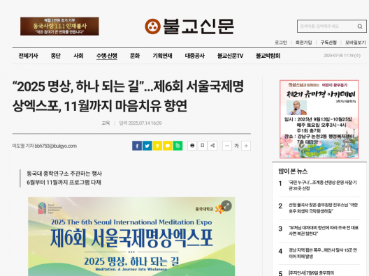 [불교신문] “2025 명상, 하나 되는 길”...제6회 서울국제명상엑스포, 11월까지 마음치유 향연