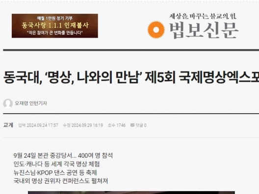 동국대, ‘명상, 나와의 만남’ 제5회 국제명상엑스포 개막